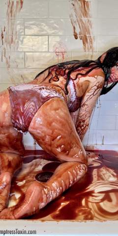 Luscious Laura rolled around with bmonster87 on a tarp covered with chocolate